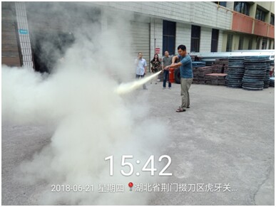 培訓(xùn)會現(xiàn)場首先講解了物資公司消防應(yīng)急預(yù)案、滅火器和消防栓的使用方法。隨后全體人員分三隊進(jìn)行了滅火器實戰(zhàn)近距離滅火及單甩水帶消防滅火基本科目演練比武?;顒又校蠹覈?yán)正以待,積極響應(yīng),聽到指令后,嚴(yán)格按預(yù)案程序執(zhí)行,全體人員沉著冷靜,不慌不亂,反應(yīng)敏捷,出色的完成了預(yù)定方案。