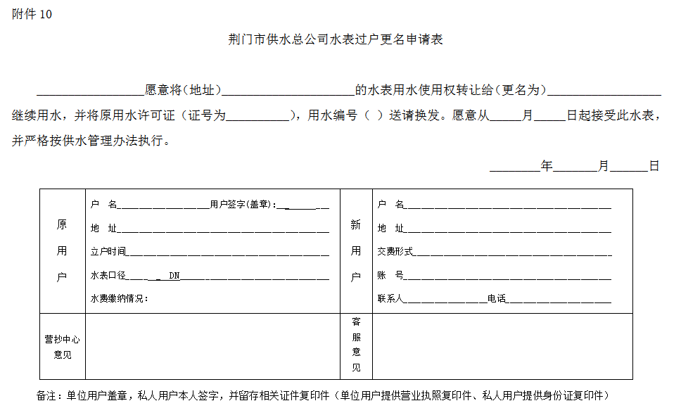 9.《荊門市供水總公司“一站式服務(wù)”業(yè)務(wù)受理登記表》