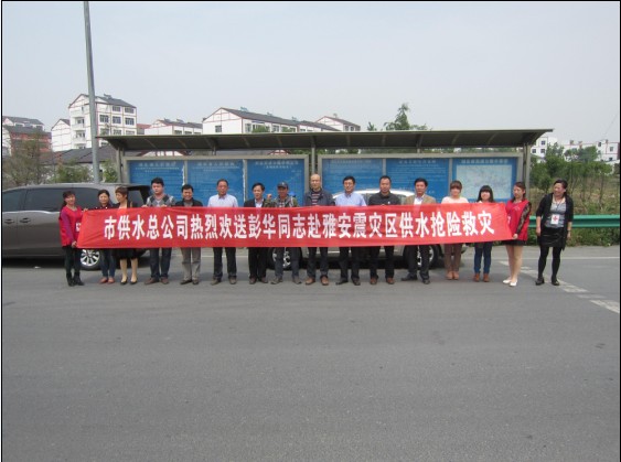 4月25日,荊門市供水總公司黨委書記陳永根,副總經(jīng)理王宜龍等一行到荊門南高速路口歡送加壓站職工彭華隨湖北紅十字會12人供水救援隊赴雅安震災區(qū)搶險救災。出發(fā)前,該司領(lǐng)導囑咐彭華在災區(qū)注意自身安全;全力以赴的撲入到搶險救災工作中去;把全體供水職工“心系雅安,你我同在”的愛心帶去。彭華表示不辜負全體員工的囑托,把愛心帶到災區(qū),并保證圓滿完成搶險救災任務。