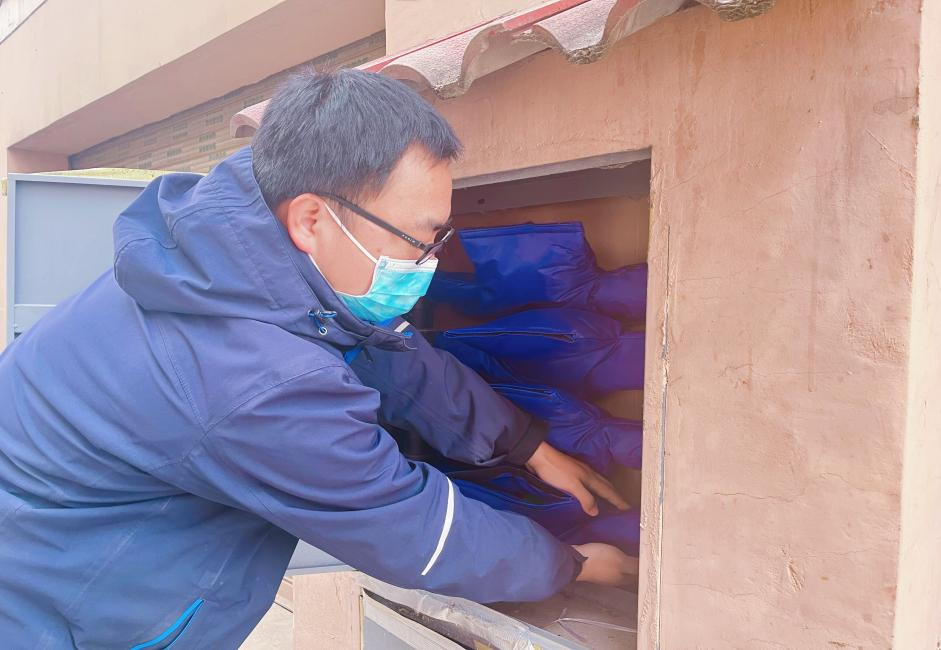[圖為工作人員添加水表防護(hù)套]