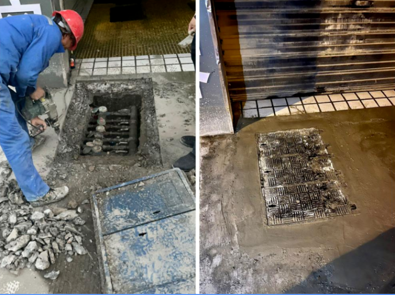 李先生是小區(qū)業(yè)主,見洗車店里每天進(jìn)出車輛較多,導(dǎo)致門口的地埋式水表箱產(chǎn)生形變,且有積水,存在一定的安全隱患。3月4日上午,在接到李先生的求助后,水務(wù)集團(tuán)第一時間派專人上門勘察,發(fā)現(xiàn)門面附近有天然氣管道標(biāo)識地磚,但沒有管道走向標(biāo)識地牌,貿(mào)然操作可能引發(fā)安全事故。經(jīng)溝通,工作人員擬將原水表箱更換為鑄鐵式水表箱,并幫其清除積水。為保障洗車店正常經(jīng)營,集團(tuán)于5號晚上完成施工整改。李先生感慨集團(tuán)反映迅速、整改及時、技術(shù)過硬。