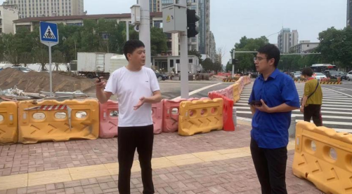 圖為集團(tuán)工作人員與小區(qū)負(fù)責(zé)人對接用水需求