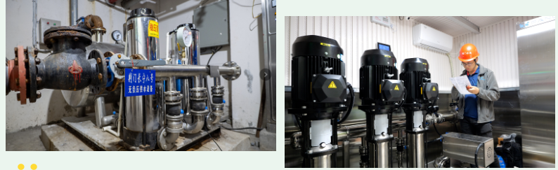 該小區(qū)物業(yè)管理員龔先生親歷了此次遷改施工全過程。嶄新的一體式泵機(jī)開機(jī)運(yùn)行時,他激動不已:“真是太好了,自從二次供水設(shè)施移交給你們后,我們就像吃了一顆定心丸,都在盼著這一天呢!”