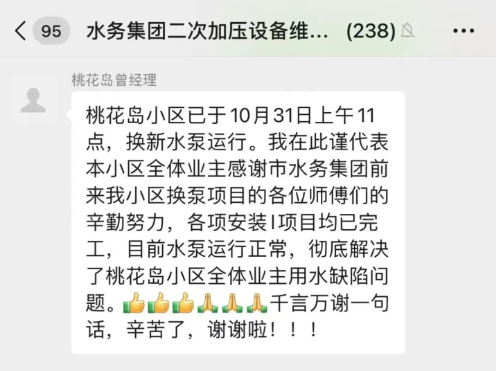 水務(wù)集團(tuán)明確施工計(jì)劃,責(zé)任到人,于10月18日進(jìn)駐桃花島小區(qū),迅速搭建臨時(shí)泵房,確保改造期間居民用水無(wú)憂。