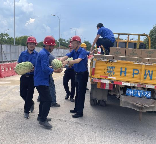 圖為集團(tuán)黨委書記、董事長陳永根(左3)為基層送清涼