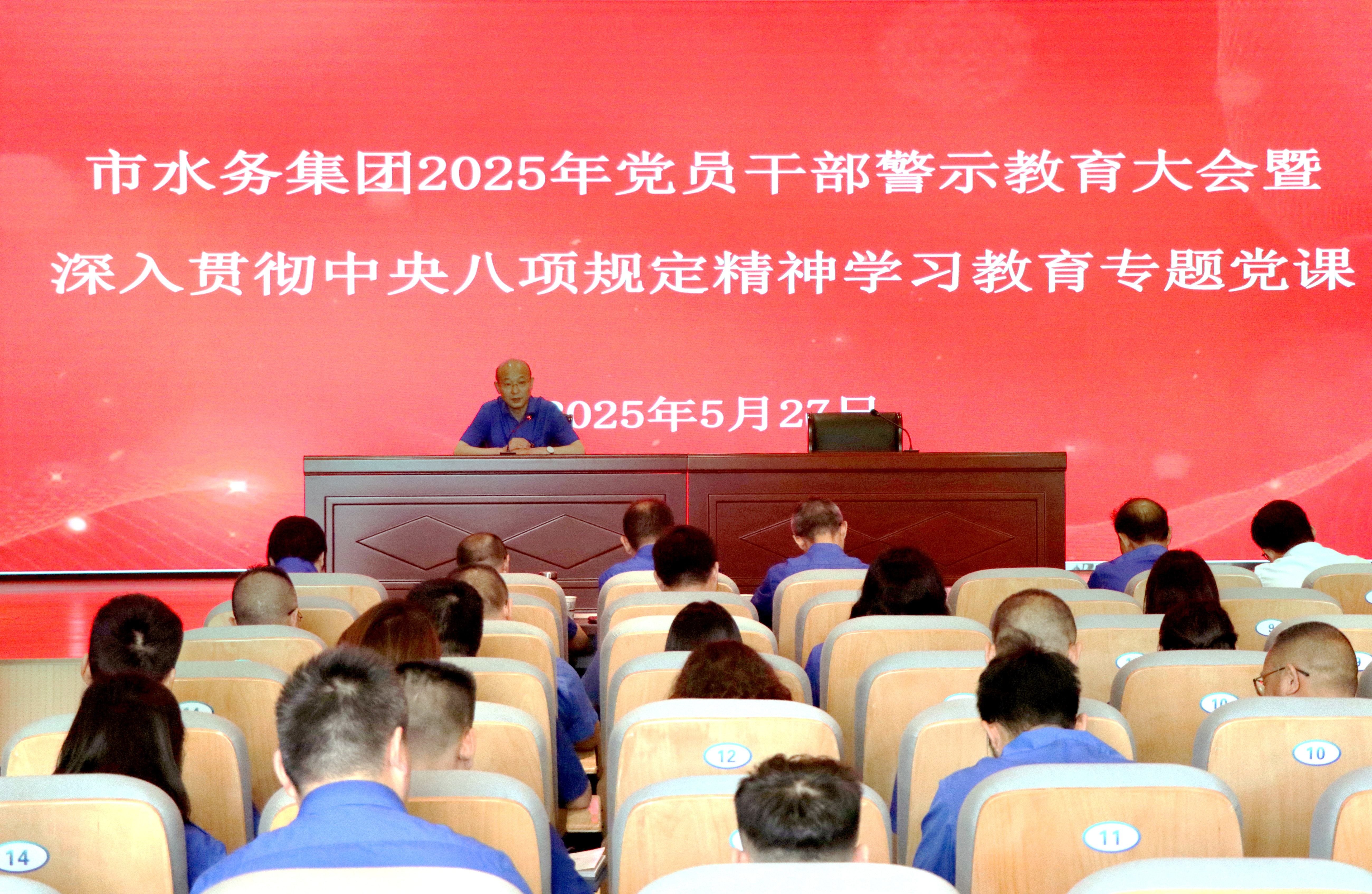按照省、市關(guān)于深化中央八項(xiàng)規(guī)定精神學(xué)習(xí)教育相關(guān)要求,5月27日上午,市水務(wù)集團(tuán)召開黨員干部警示教育大會暨深入貫徹中央八項(xiàng)規(guī)定精神學(xué)習(xí)教育專題黨課。會議組織觀看警示教育片,集團(tuán)黨委書記、董事長陳永根講授專題黨課,集團(tuán)黨委委員、紀(jì)委書記劉高軼主持會議。集團(tuán)全體高層領(lǐng)導(dǎo)、中層干部及機(jī)關(guān)黨員參加會議。
