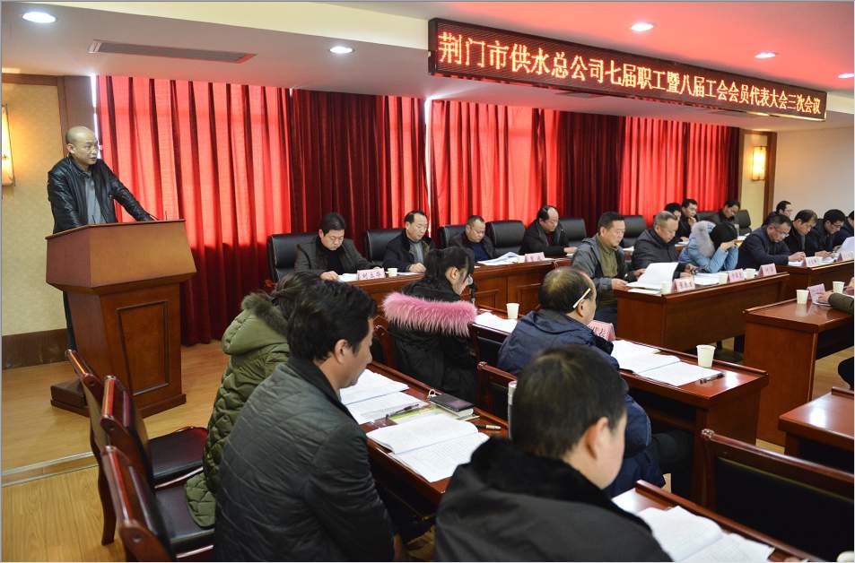 會議在莊嚴的國歌聲中開幕。公司黨委書記、總經(jīng)理陳永根作了《2016年度公司工作報告》,認真總結(jié)了2016年度取得的各項成績;供水設(shè)施建設(shè)投資體制理順、5條道路供水管道改遷提前完成、國賓酒店環(huán)評獲批;管黨治黨高度前所未有、項目建設(shè)力度規(guī)??涨?、公司主輔業(yè)產(chǎn)值連續(xù)五年雙過億,總額首次突破3億元等??陀^分析了當(dāng)前企業(yè)發(fā)展存在的機會和挑戰(zhàn),并對2017年度的工作作出了展望。黨委委員、工會主席馬兆芳,黨委委員、總會計師劉高軼分別作了《2016年度工會委員會工作報告》、《荊門市供水總公司2016年度財務(wù)預(yù)算執(zhí)行及2017年財務(wù)預(yù)算草案編制報告》、《荊門市供水總公司2016年度工會經(jīng)費執(zhí)行及2017年工會經(jīng)費預(yù)算情況報告》。職工代表提案審查小組組長卞軍虎對七屆職工暨八屆工會會員代表大會二次會議職工代表提案辦理情況作了報告,七屆職工暨八屆工會會員代表大會二次會議共收到34份職工提案,實際需要回復(fù)和辦理的提案為32份,已辦結(jié)的有27份,正在落實的5份,報告中對正在落實的提案進行了說明。工會副主席張春生對本次會議征集職工代表提案作了報告,本次會議共收到19份提案,其中涉及經(jīng)營管理的5份,技術(shù)改革的1份,教育培訓(xùn)的1份,薪資福利待遇的12份。會議期間,與會代表給予六個報告充分肯定,圍繞各項工作報告,進行了熱烈討論,提出了許多寶貴的建議和意見。