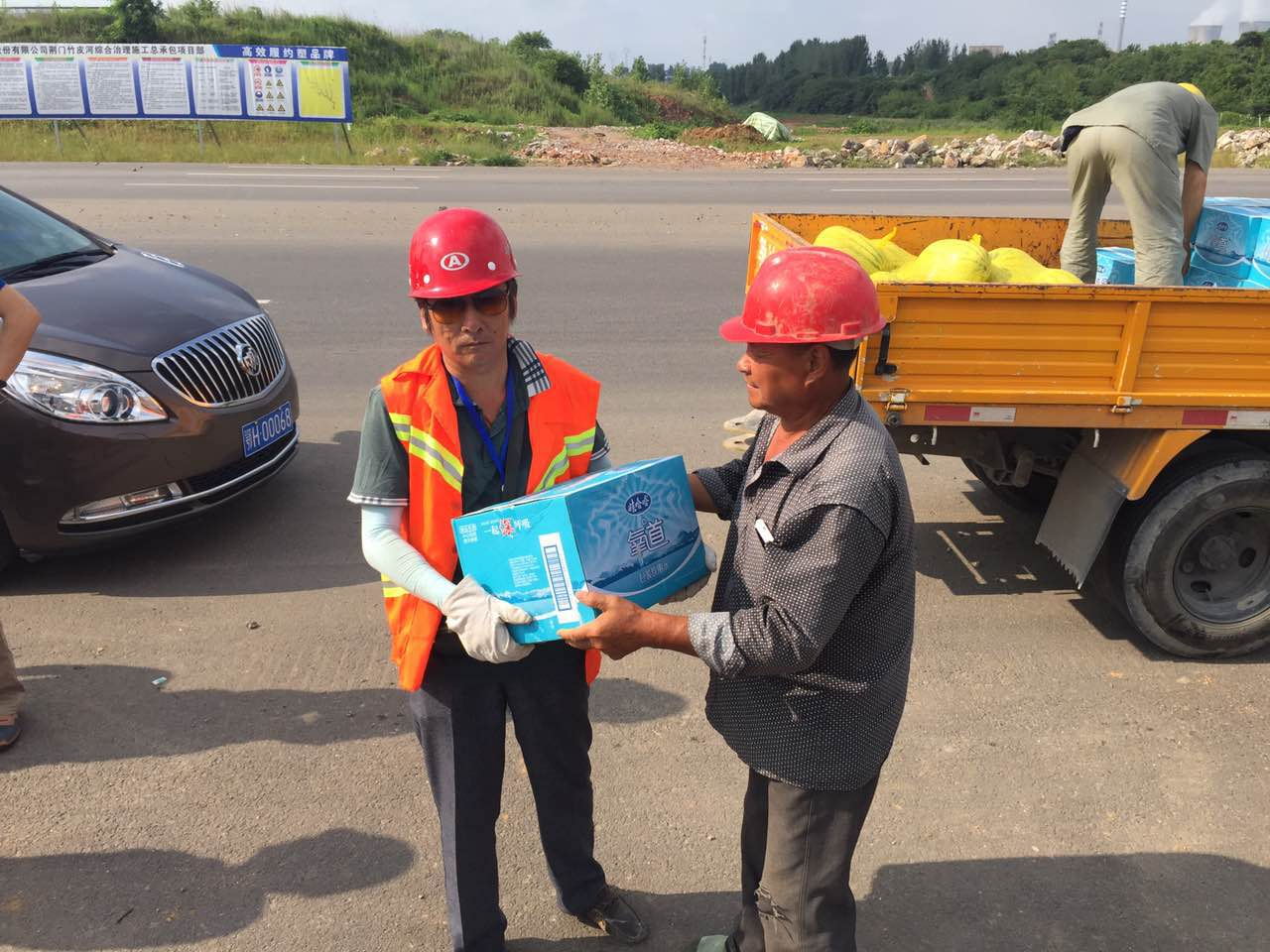 在白云大道、泉水大道等項(xiàng)目工地,陳永根一行將一箱箱礦泉水、飲料和西瓜等慰問物質(zhì)送到每一位施工人員手中,并親切詢問他們的工作生活情況,叮囑他們?cè)诟邷厍闆r下作業(yè)要注意身體健康和生產(chǎn)安全。他要求,安裝公司、維修公司要加強(qiáng)對(duì)防暑降溫待遇及措施的落實(shí),認(rèn)真做好高溫天氣下的后勤保障工作,適當(dāng)增加高溫、露天工作人員的休息時(shí)間和減輕勞動(dòng)強(qiáng)度。要切實(shí)做好高溫天氣的安全隱患排查,確保各個(gè)重點(diǎn)項(xiàng)目按時(shí)間節(jié)點(diǎn)穩(wěn)步推進(jìn)和一線工人的安全、健康。