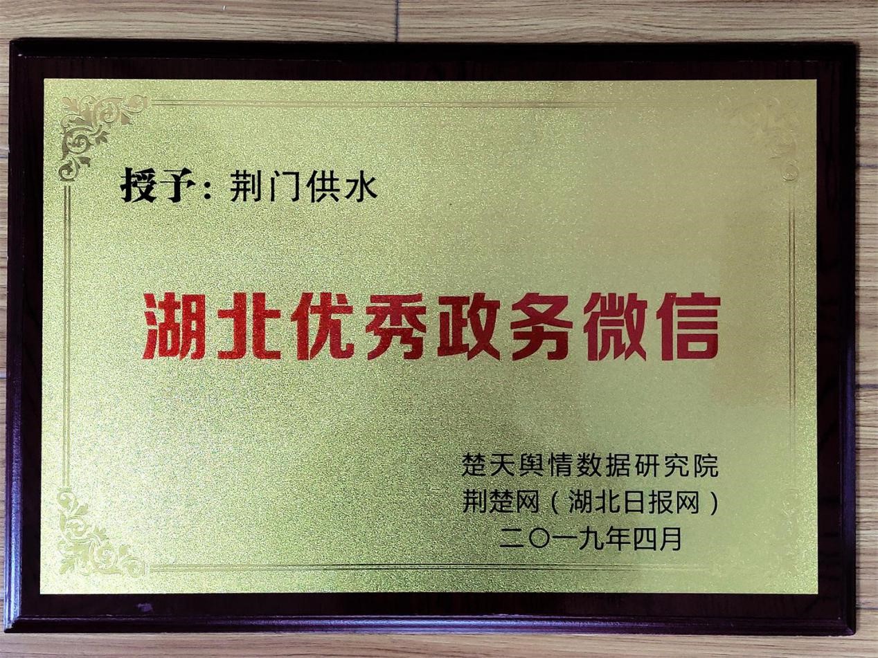 4月26日上午,由省委網(wǎng)信辦指導(dǎo)、湖北日報(bào)傳媒集團(tuán)主辦的2019湖北第二屆政能量峰會(huì)在武漢舉行。會(huì)上,“荊門供水”微信公眾號(hào)被楚天輿情數(shù)據(jù)研究院、荊楚網(wǎng)(湖北日報(bào)網(wǎng))表彰為“全省優(yōu)秀政務(wù)微信公眾號(hào)”。
