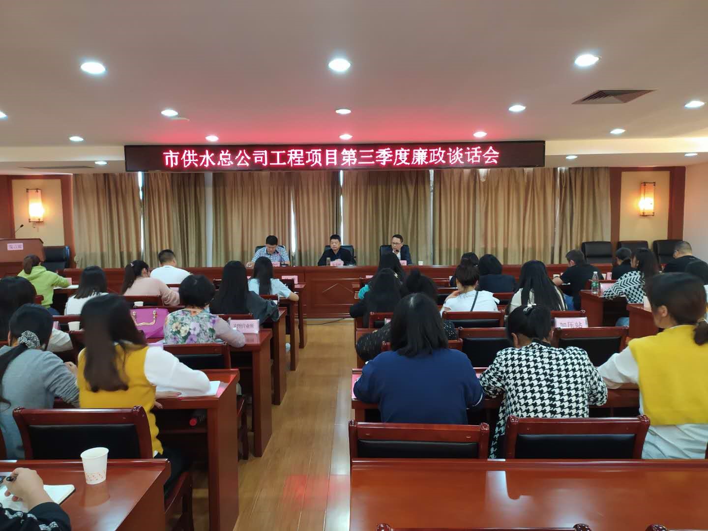 為進一步做好財務(wù)工作,提高財務(wù)人員廉政意識,防范財務(wù)風(fēng)險,9月24日下午,市供水總公司舉行工程項目(財務(wù)管理方面)第三季度廉政談話會。公司黨委副書記、紀委書記徐黎明主持會議,黨委委員、總會計師劉高軼進行廉政談話,總公司財務(wù)部全體工作人員、各獨立核算二級單位財務(wù)分管負責人和全體財務(wù)人員、非獨立核算二級單位和機關(guān)各部門報賬員,公司紀委委員、各支部紀檢委員參加會議。