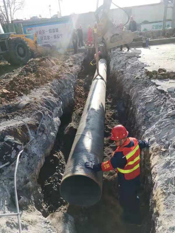 圖為荊門(mén)城區(qū)供水主管下穿培公大道施工現(xiàn)場(chǎng)