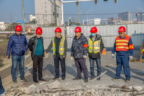 2月14日(農(nóng)歷正月初三)一大早,2臺(tái)挖掘機(jī)、2臺(tái)貨車、1臺(tái)工程車、1臺(tái)送水車、1臺(tái)小型鏟車陸續(xù)開(kāi)到了現(xiàn)場(chǎng),2臺(tái)發(fā)電機(jī)組和相關(guān)材料也運(yùn)到了現(xiàn)場(chǎng)。7時(shí)許,近30名工作人員集結(jié)完畢。羅紅勝負(fù)責(zé)現(xiàn)場(chǎng)施工。他將工作人員分成交通組和施工組。交通組先擺放錐形安全桶引導(dǎo)交通,再用圍擋將施工區(qū)域隔離出來(lái)。隨后,交通組工作人員守在幾個(gè)路口引導(dǎo)交通。施工組也很快行動(dòng),路面切割、破碎,鋼筋剪切,碎渣拖運(yùn)……所有工作有序開(kāi)展。